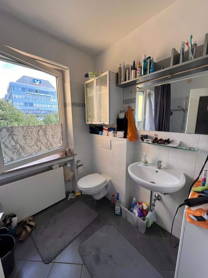 Sehr ruhige, zentral gelegene und sonnige 2 Zimmer-Wohnung mit Wohnküche, kleinem Balkon und Badezimmer mit WC und Badewanne, sowie Tiefgaragenstellplatz und Kellerabteil, in Bogenhausen, U-Bahn-Station Richard-Strauss-Str., Denninger Str..