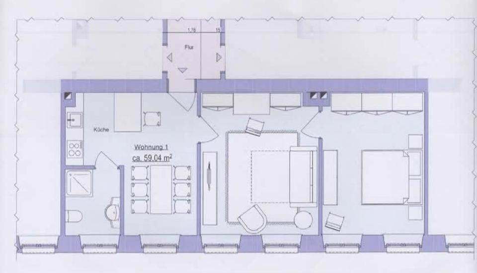 Zur Vermietung kommt diese 2-Zi.-Wohnung in direkter Innenstadtlage, gelegen im 3.OG eines Wohn- und Geschäftshauses in Bayreuth. Die Wohnung erreichen Sie bequem mit dem Aufzug. Die Wohnung hat eine Größe von ca. 59,04 m² und unterteilt sich in folgende Bereiche.
