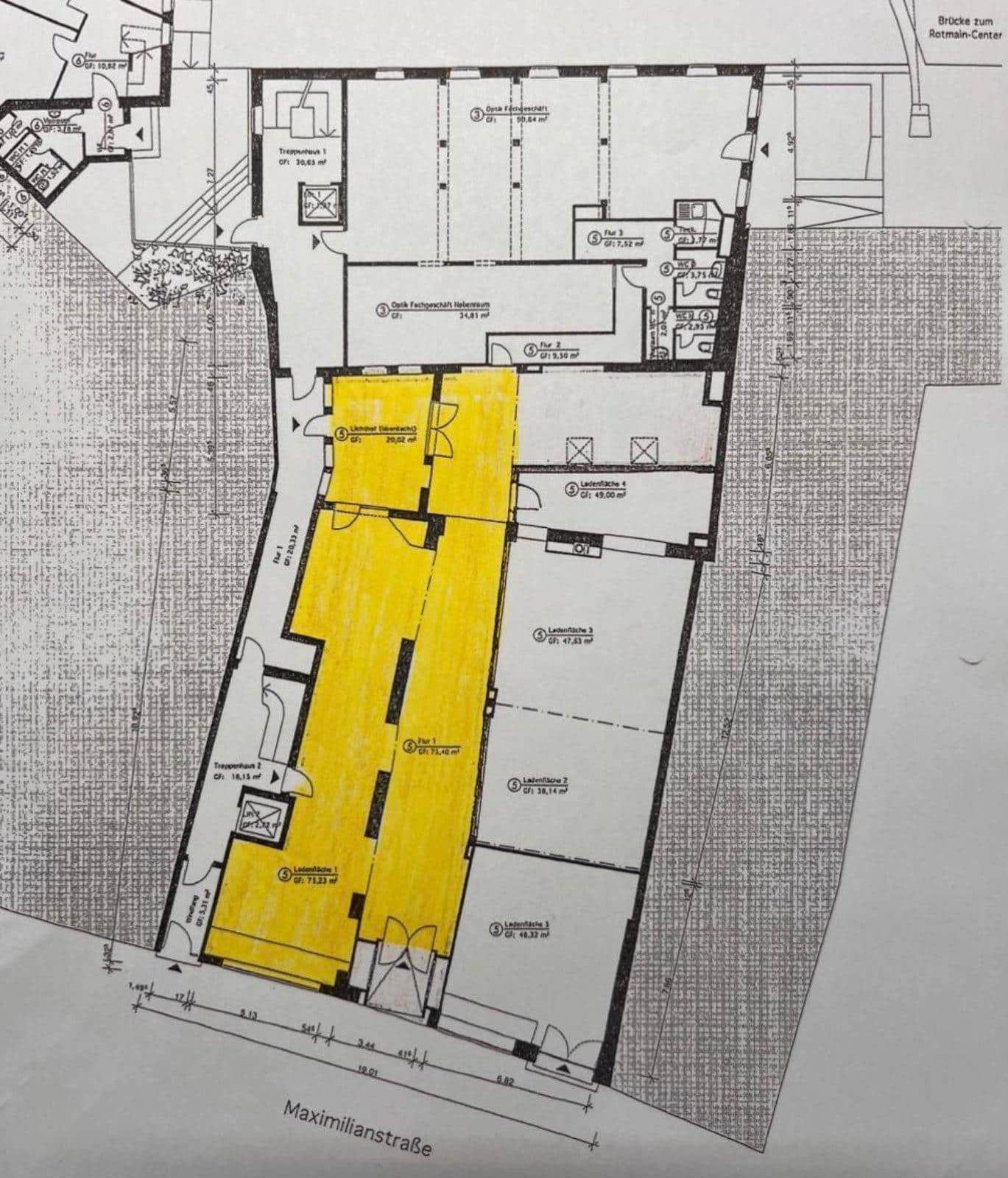 In absoluter Toplage der Bayreuther Innenstadt steht eine ca. 225 m² große Gewerbefläche zur Vermietung. Die Immobilie befindet sich in einer hochfrequentierten Fußgängerzone. Im selben Gebäude befindet sich eine Arztpraxis mit hoher Patientenfrequenz, die zusätzliche Besucherströme generiert. Das Rotmaincenter (RMC) ist in wenigen Gehminuten erreichbar und fungiert als zusätzlicher Frequenzbringer inkl. seinem Parkhaus. Ebenso Fußläufig erreichbar ist der Zentrale Busbahnhof (ZOH), dieser gewährleistet eine optimale Anbindung an den öffentlichen Nahverkehr.