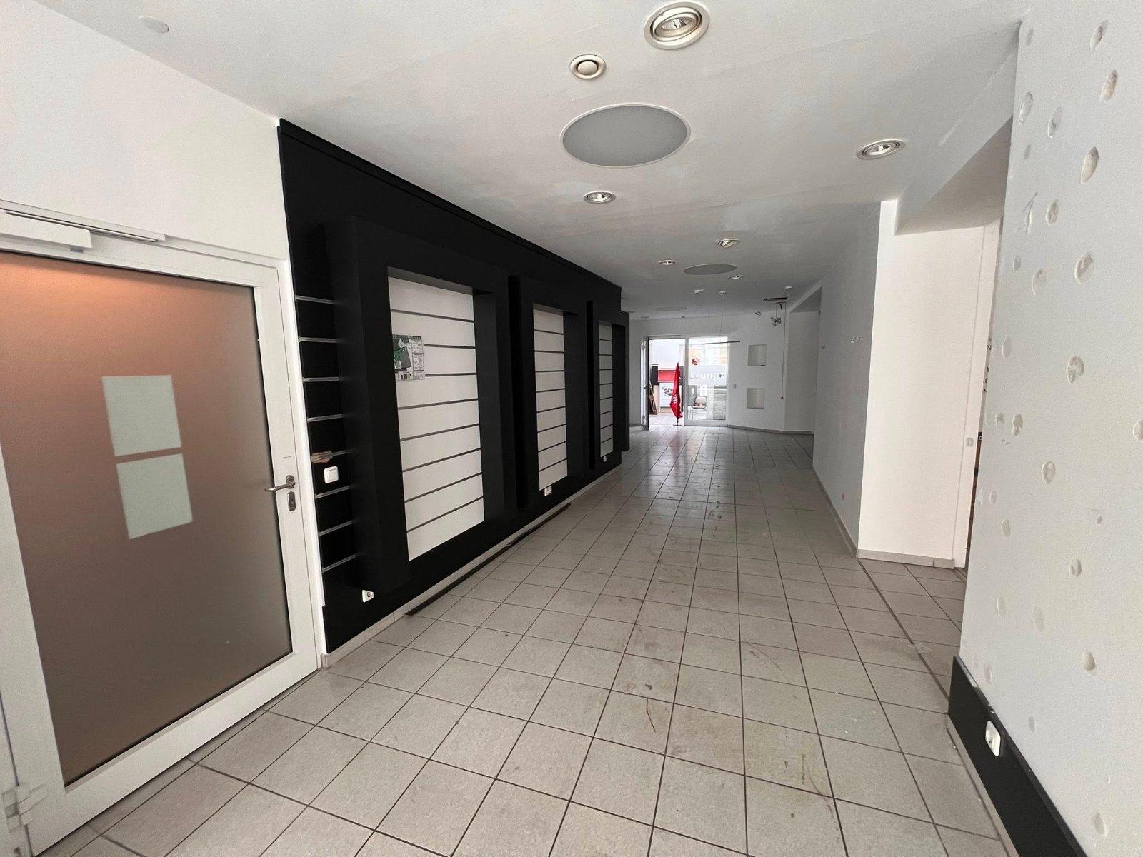Der Grundriss ist schlauchförmig angelegt, wodurch sich eine klare und effiziente Kundenführung ergibt – ideal für Einzelhandels- oder Dienstleistungskonzepte mit linearer Struktur.