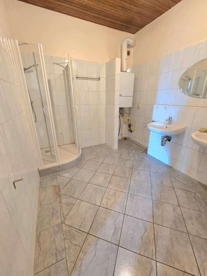 Bad mit Duschkabine, WC u. Gastherme,WaMa,Wabe